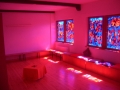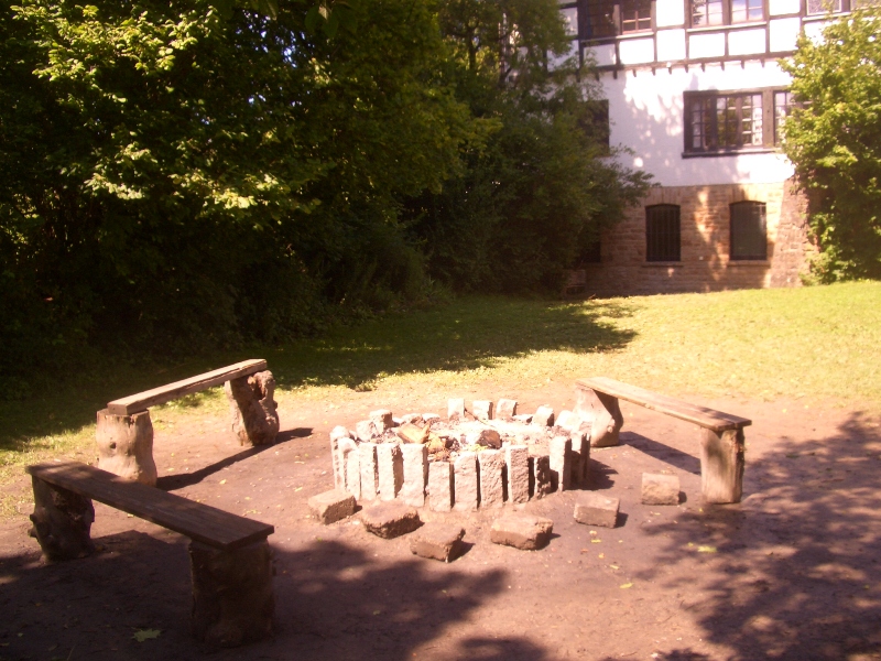 RäumlichkeitenSpielräumeDer „Säulensaal” ist für große Sessions sehr geeignet und hat eine angrenzende Terasse. Unterhalb der Terasse gibt's eine geschützte Ecke, wo man gut einen Pavillion und 2 Biertische aufstellen kann mit direktem Zugang zu den Sanitäranlagen im Keller und direktem Blick zur Feuerstelle ... das wäre die ideale Raucherecke. Ich habe vor, innen im Keller noch einen angelieferten Kühlschrank mit Getränken zu deponieren, damit der dortige Raucher- und Lagerfeuerbereich trinktechnisch auch gut versorgt ist. Die E-Fraktion ist definitiv möglich: entweder beengt im Leseraum oder geräumig mit kirchlicher Atmosphäre im Meditationsraum. Das „Lesezimmer” ist nicht besonders groß. Der direkt benachbarte „Meditationsraum” ist zwar riesig, aber hat er durch die "Kirchenfenster" ein sehr komisches Licht. Unsere E-Fraktion müsste vor Ort selbst entscheiden, wo sie sich aufbaut … Da beides direkt an Schlafräume angrenzt, müssten wir uns auf E-Gitarren-Spielzeiten von 11.00 - 23.00 Uhr einigen. Außerdem gibt’s im Erdgeschoss noch einen Büroraum, die Sitzecke im Anbau zwischen den Doppelzimmern wären auch noch bespielbar, genauso wie der Platz vor dem Haupteingang im Hof, diesen will ich auch mit Biertischgarnituren zu bestücken. … und natürlich gibt’s auch die riesigen Wiesenflächen ums Haus herum. Hier nochmal alle Bilder der „Spielräume”: SchlafräumeEs gibt 3 riesige Schlafsäale (EG_10 Betten – 1.OG_12 Betten und DG_10 Betten)… teilweise liegt man wie bei den 7 Zwergen: Bettchen an Bettchen. 4 Einzelzimmer (1.OG), von denen wir 3 evtl. per Luftmatratze für Paare nutzen könnte, wobei ich aber auf keinen Fall die maximale Personenbelegung in Haus überschreiten will … Im DG gibt es 2 Doppel und je einen 3- und 4 Bettraum, die evtl. als Familienzimmer taugen (nur bisher haben sich keinerlei Familien für die Übernachtung vorgemerkt). Ein 5-Bett-Zimmer, im EG könnte genutzt werden, um die ärgsten Schnacher zusammenzulegen. Des weiteren gibt es noch 2 Doppelzimmer im Anbau (siehe unten)Die Anzahler(=Frühbucher) werden bei der Zimmervergabe/Zimmerwunsch grundsätzlich bevorzugt. Wer im Haus keinen Platz mehr findet (oder sowieso lieber draußen übernachtet) kann zelten. Mit 56 Betten und ca. 14 Zeltern wäre die Kapazität des gesamten Hauses dann ziemlich ausgereizt. AnbauEs ist ein Anbau dabei, der in der Homepage gar nicht erwähnt ist. Dort befinden sich 2 weitere Doppelzimmer, eine kleine separate Küche und eine ebenerdige Toilette. Direkt davor befindet sich abgetrennt vom Lagerfeuer und Raucherecke (s.o.) eine riesige Zeltwiese.FunktionsräumeIm EG sind Speisesaal, Küche und Spülküche. Auf dieser Ebene gibt es inkl. Anbau nur 2 Toiletten auf der 1.Etg. zwei Toiletten und im DG wiederum nur eine. Dafür sind im Kellergeschoss ausreichend Toiletten Duschen und sonstige Waschgelegenheiten vorhanden. |